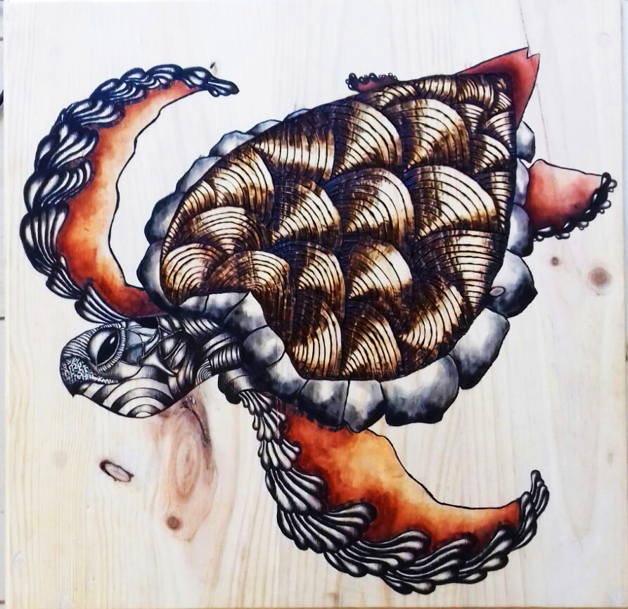 La técnica del pirograbado se lleva a cabo con una pequeña máquina, el pirograbador.