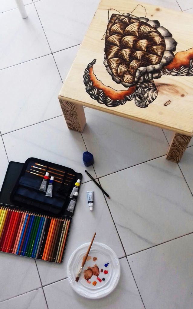 Esta técnica puede utilizarse en variados ámbitos; en este ejemplo que ofrezco he utilizado para la decoración de una mesa de noche.