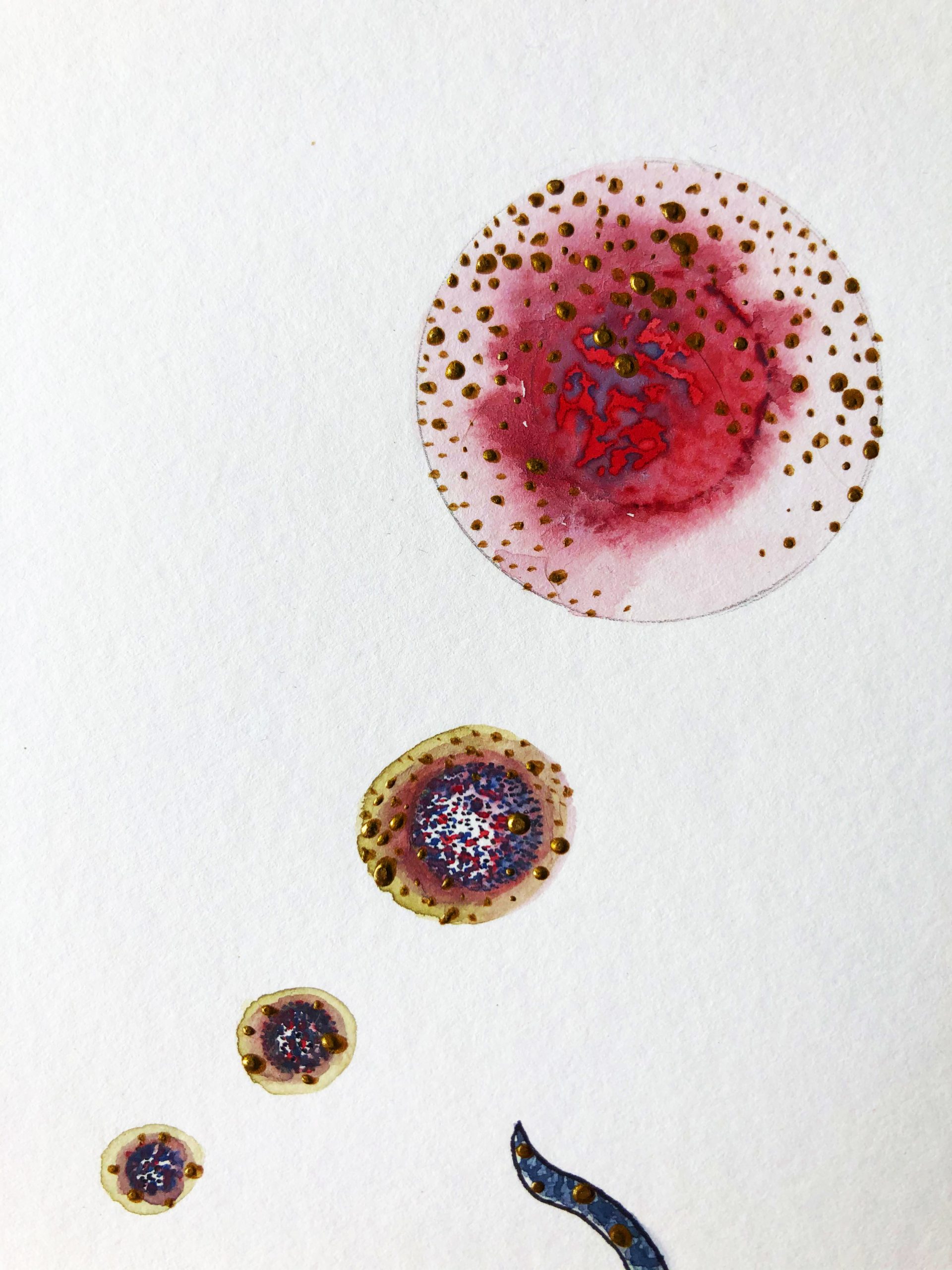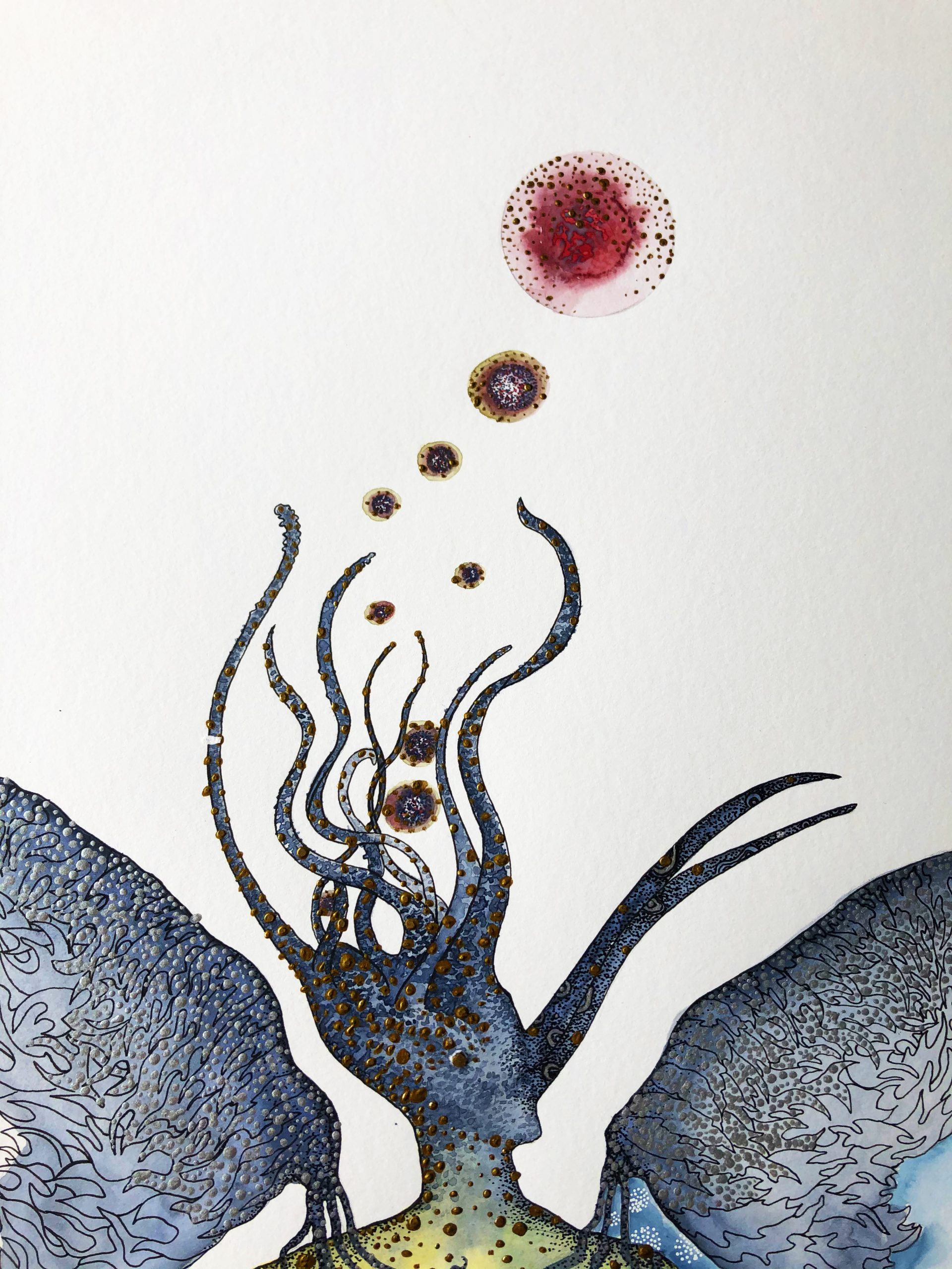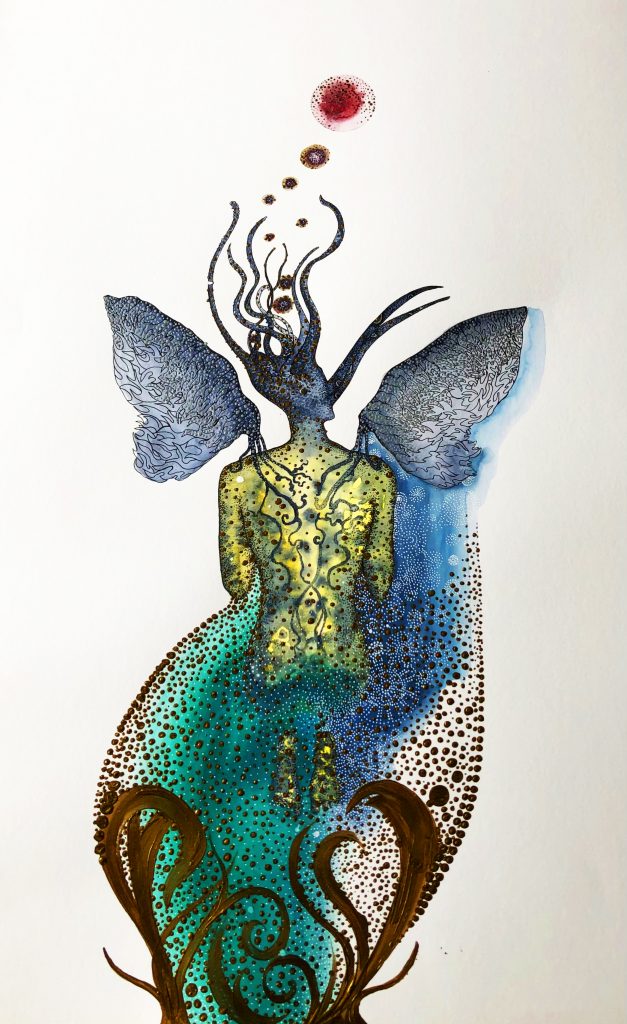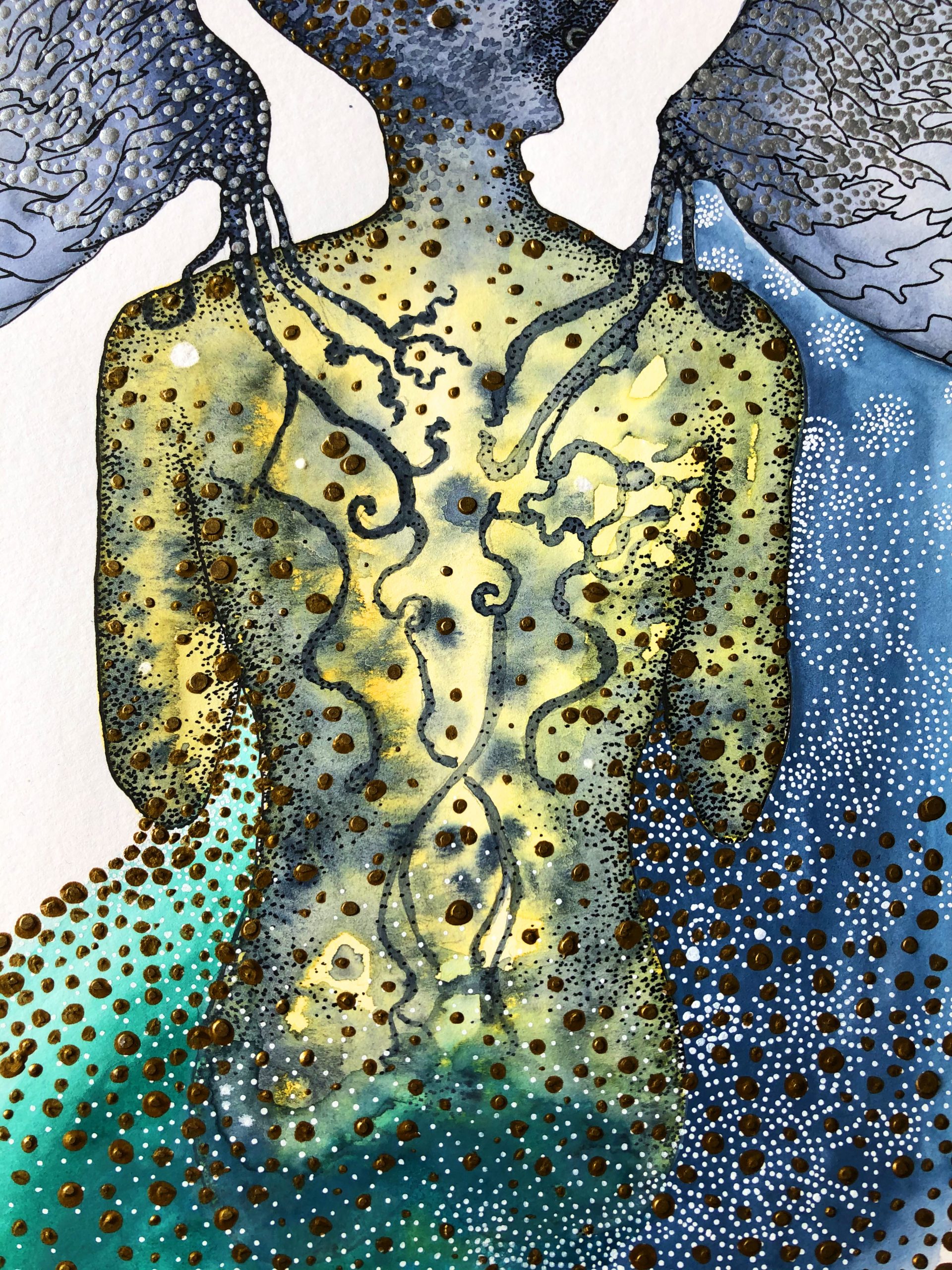 Esta es una serie de 3 ilustraciones realizadas a lápiz, acuarela, rotulador, estilógrafo y tempera dorada texturizada.