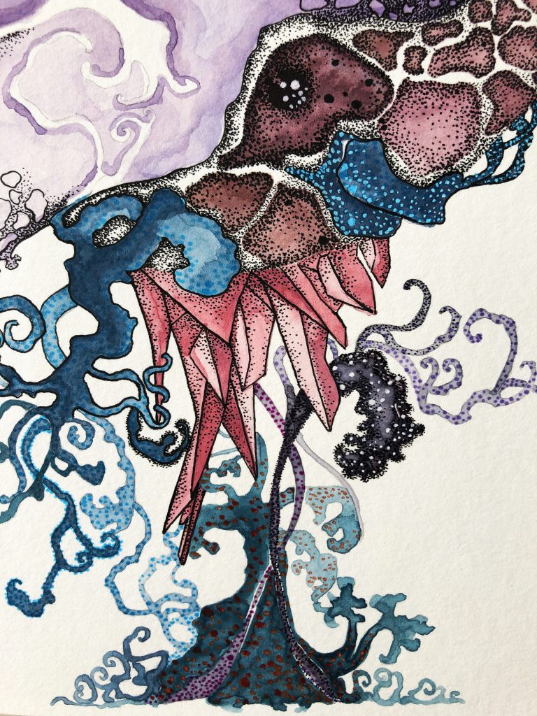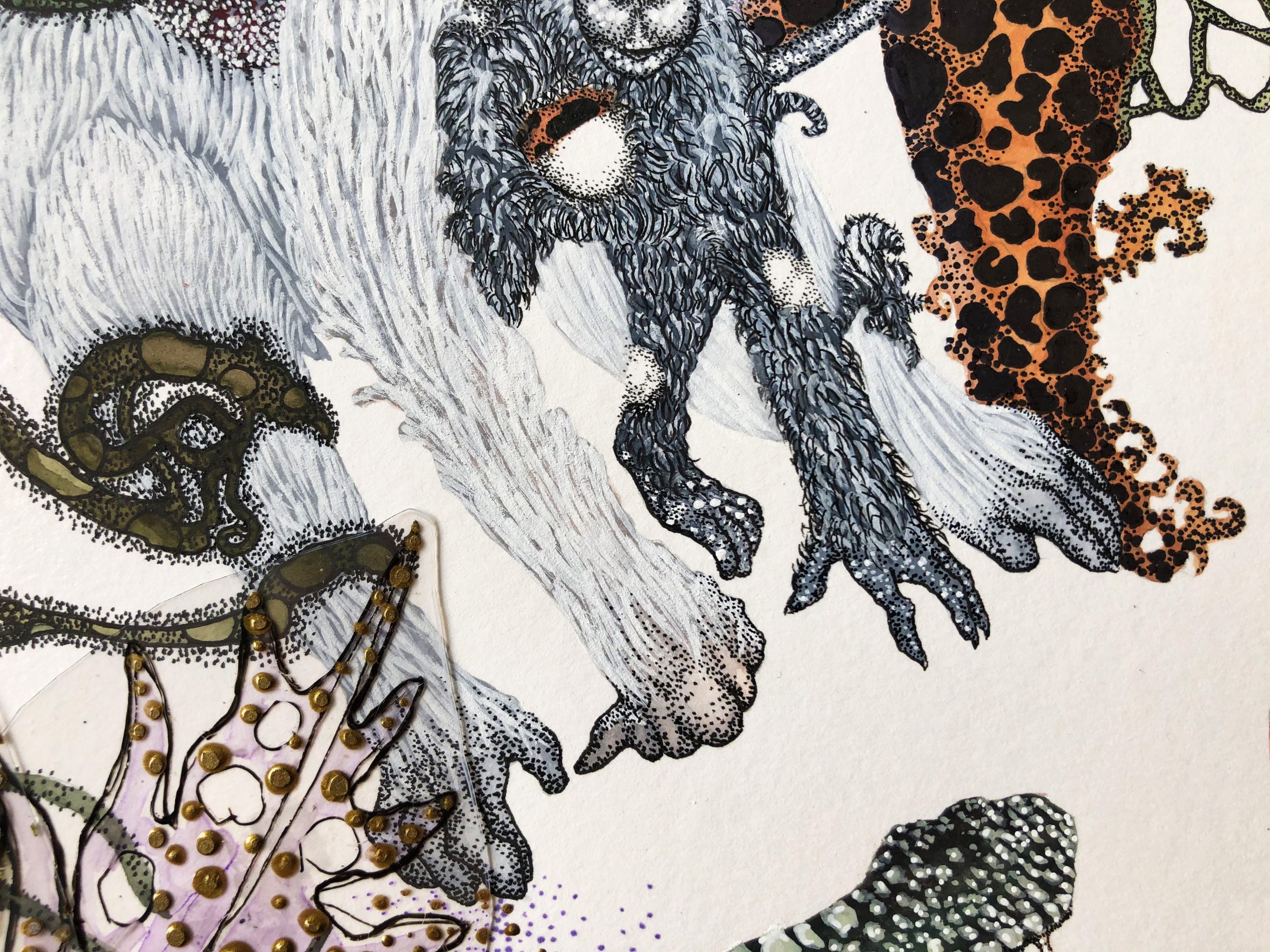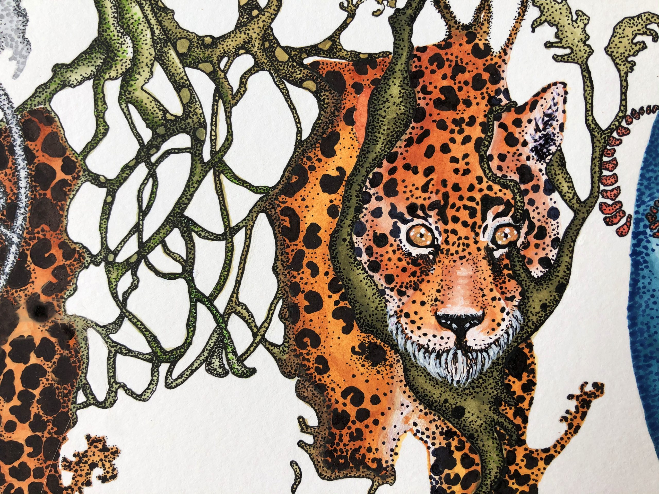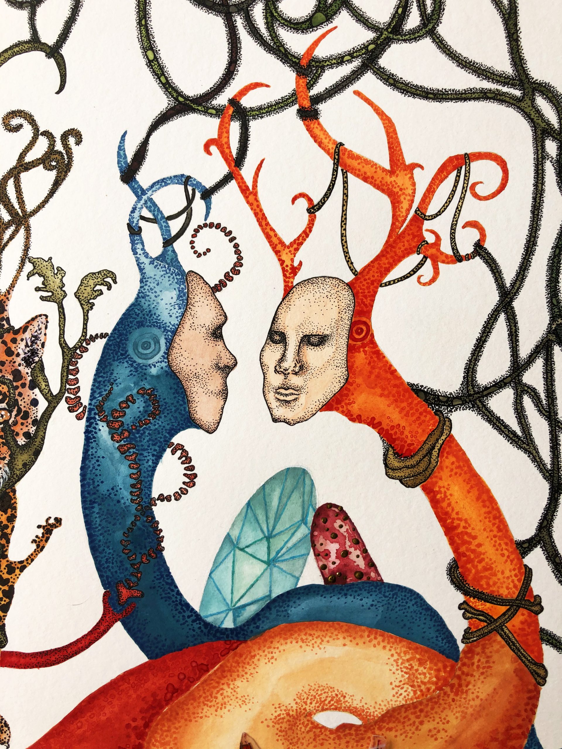 Esta es una serie de 3 ilustraciones realizadas a lápiz, acuarela, rotulador, estilógrafo y tempera dorada texturizada.